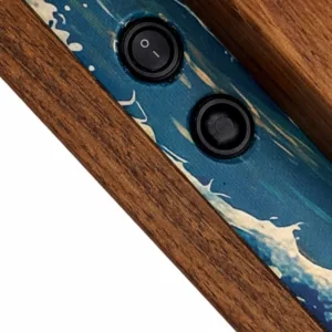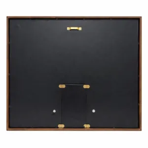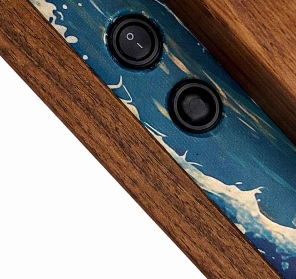 50x40cm in legno noce. Dimensioni pensate per dare respiro alla scena — abbastanza grandi da essere il centro visivo di uno spazio, abbastanza contenute da stare su una scrivania, una libreria, una mensola. Il legno noce porta con se un calore naturale che il nero opaco non può dare: ogni venatura e diversa, ogni cornice e leggermente unica.