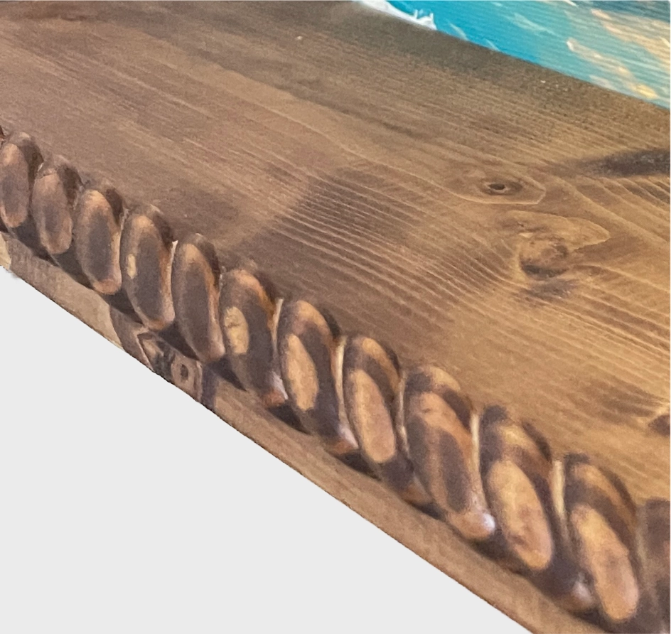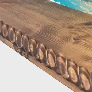 Il piano d’appoggio per le tue figure non è un ripiano anonimo. È rivestito con legno a forma di corda — colore noce, consistenza ruvida e autentica. Come un pontile. Come la prua del Going Merry. Un dettaglio che si nota subito, che racconta qualcosa, che distingue questo espositore da qualsiasi altra cosa sul mercato.