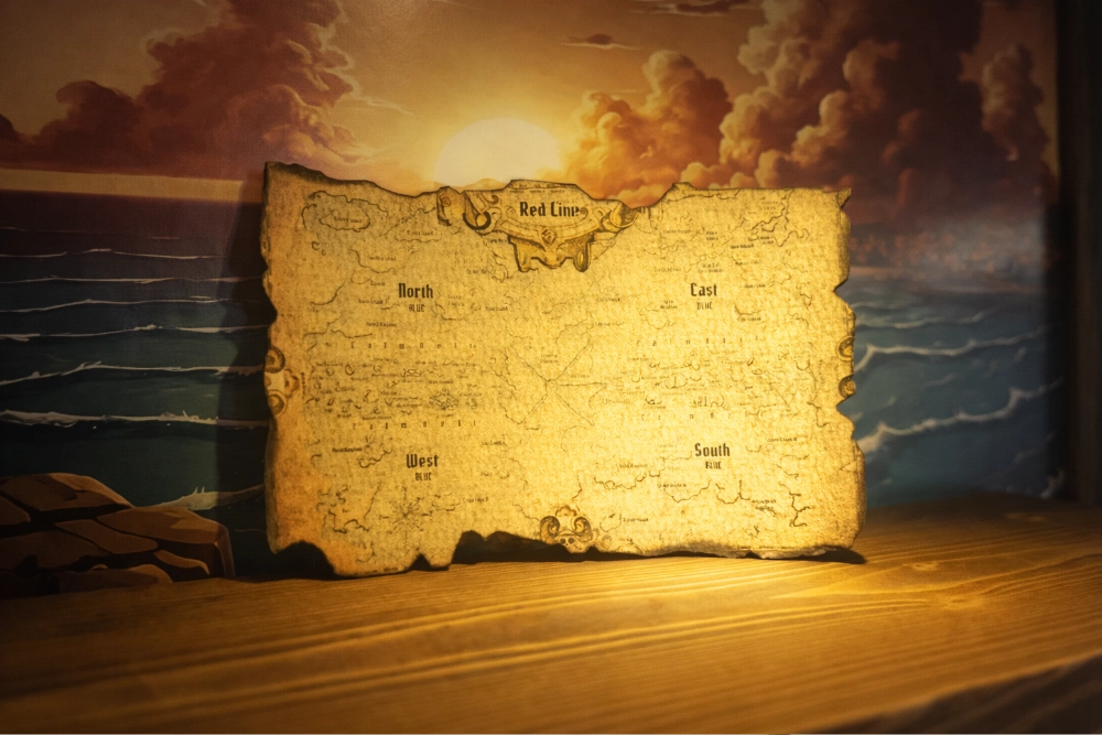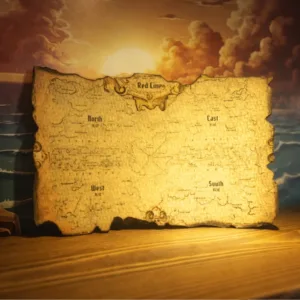 Ogni The Straw Hat Frame Mini viene spedito con una mappa del tesoro stampata su carta effetto pergamena invecchiata. Circa 10x14cm, arrotolata e legata con uno spago. Non è un inserto promozionale. È un oggetto pensato per chi sa apprezzare i dettagli — da tenere arrotolata sulla mensola accanto alle figure, da appendere, da regalare insieme all’espositore come parte di un’esperienza unica.