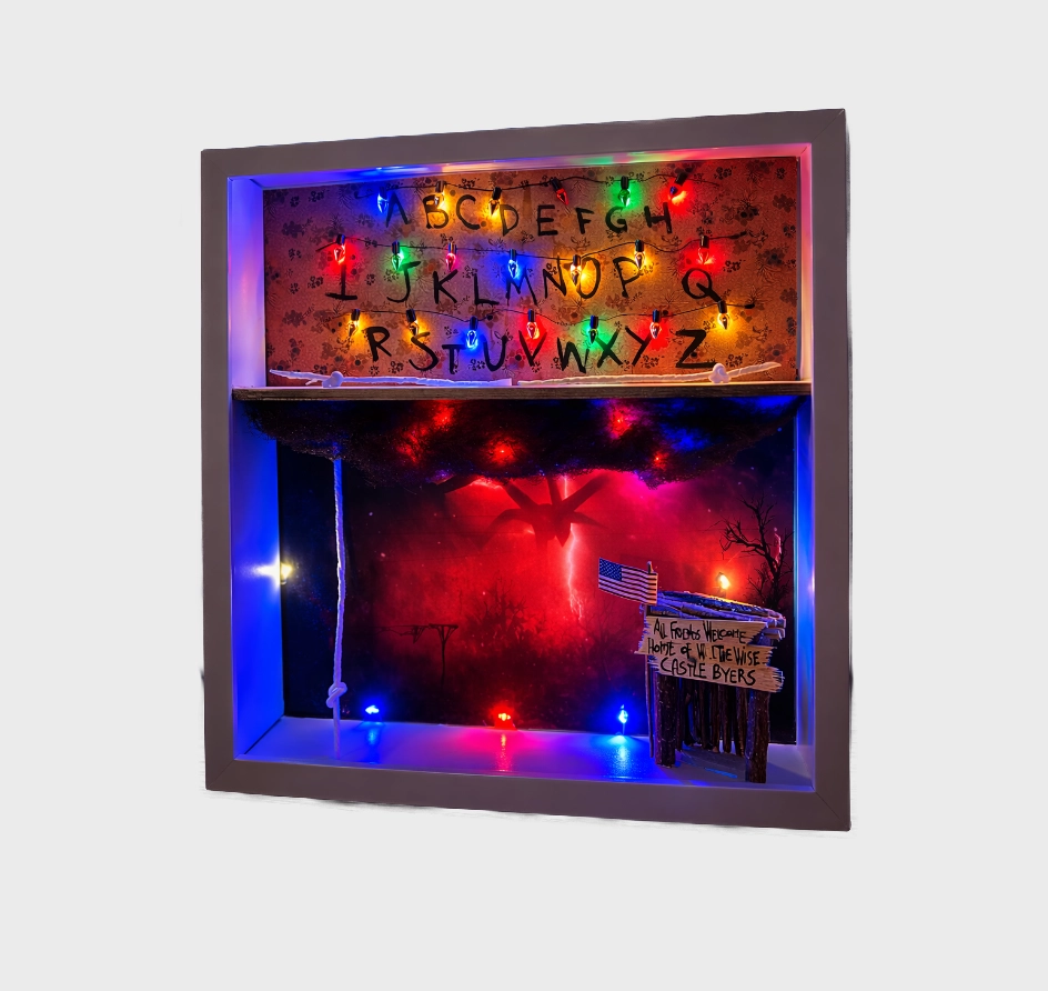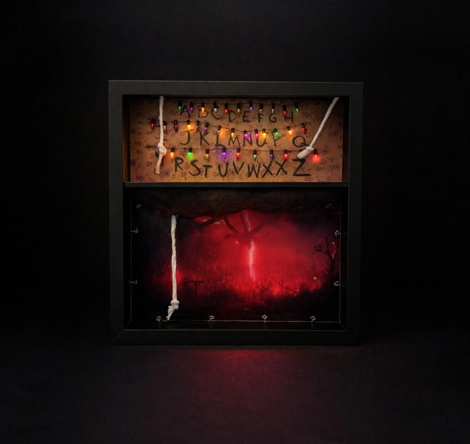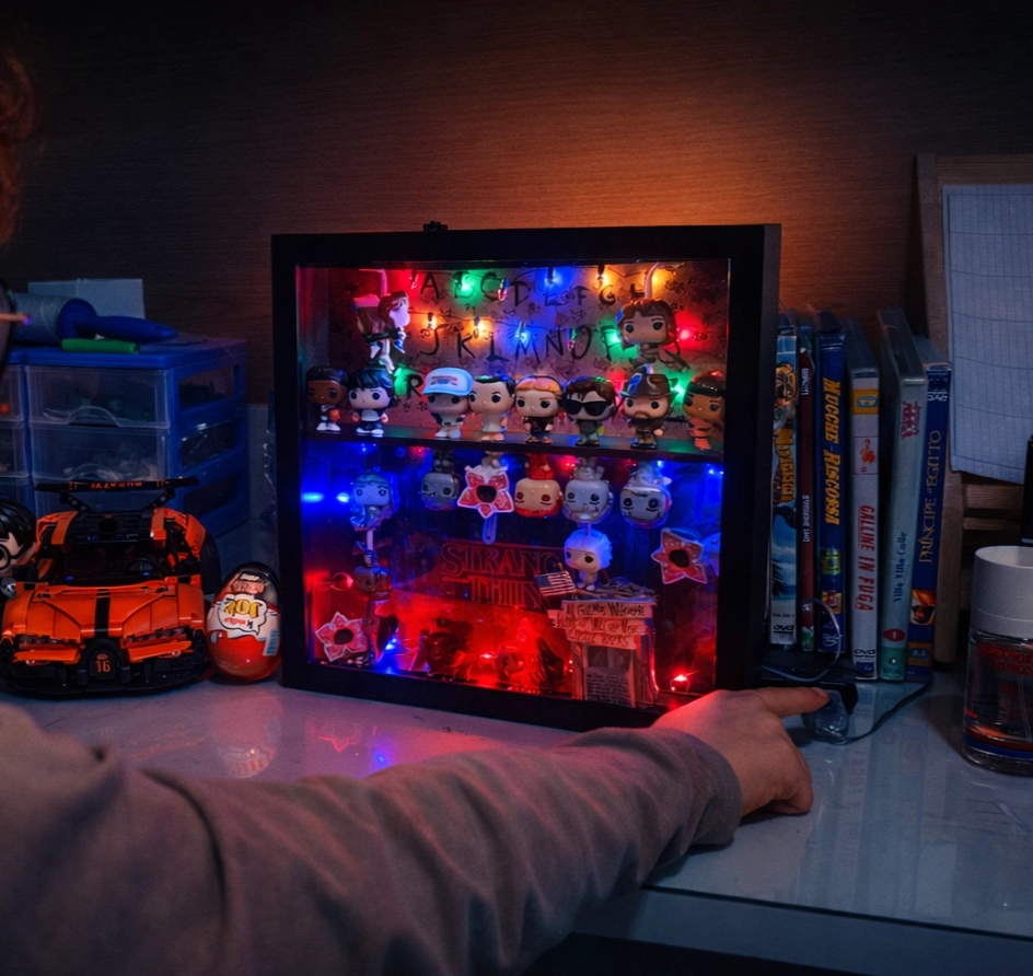 The Upside Down Display porta il mondo di Stranger Things nella tua stanza — con la stessa tensione silenziosa della serie, la stessa luce che sembra sempre sul punto di spegnersi. Un espositore artigianale pensato per chi non vuole limitarsi a tenere le figure su uno scaffale, ma vuole costruire una scena.